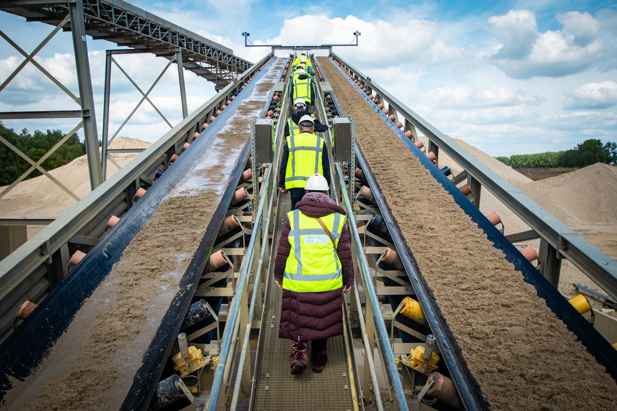 Via een slimme lopende band, die zichzelf oprolt, wordt het materiaal naar de voorhaven vervoerd. Daar wordt een nauwkeurige mix gemaakt van verschillende korrelgroottes, die vervolgens direct op een schip wordt geladen.