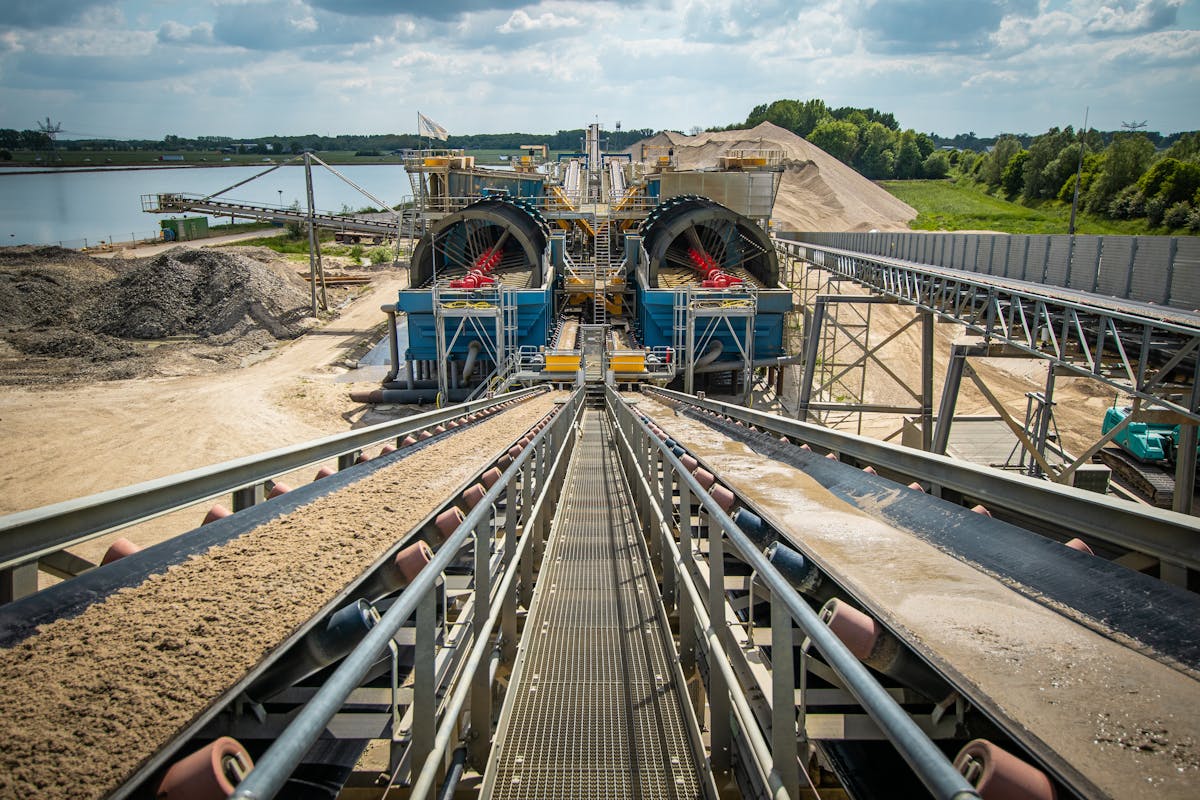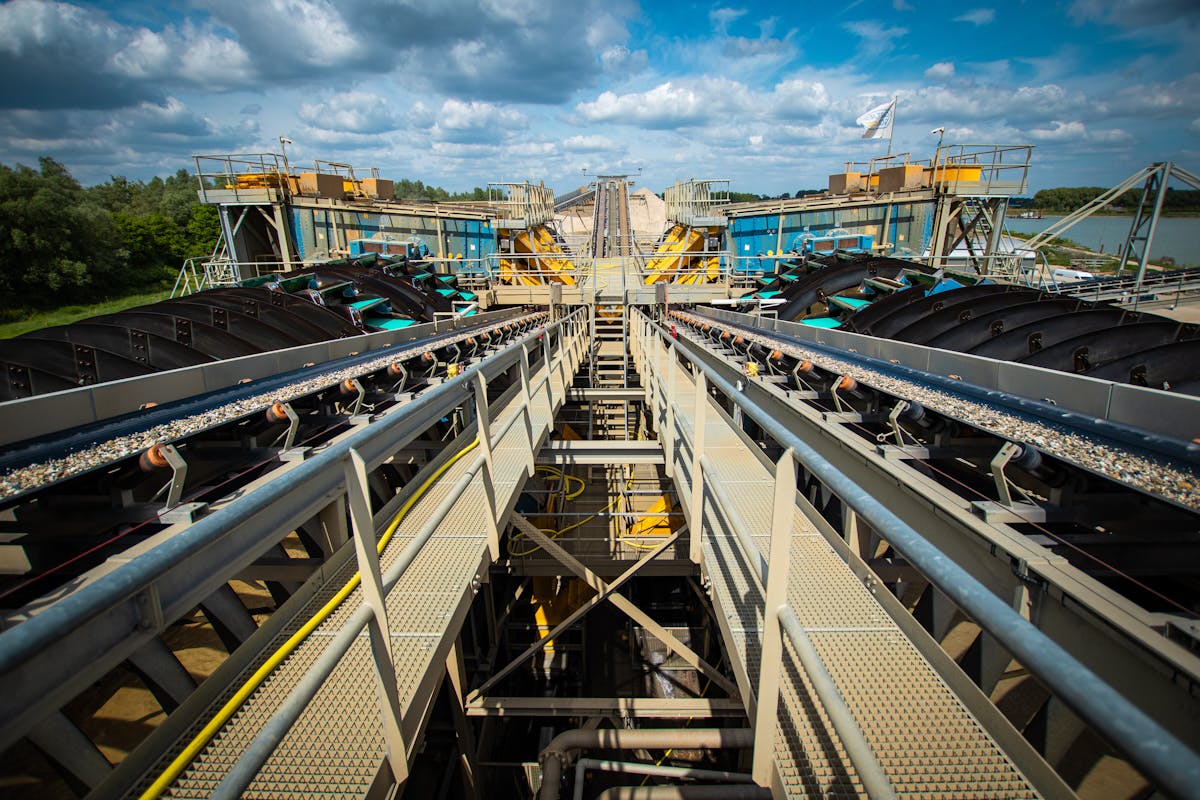 Zodra de materialen gewonnen zijn, vindt er op het terrein zelf een uitgebreide sortering plaats. Zand en grind worden in de installatie langs de Van Heemstraweg zorgvuldig – en met flink wat geschud – van elkaar gescheiden. Té grove stenen? Die worden in een krachtige centrifuge fijngemalen, zodat ook deze bruikbaar zijn voor beton.