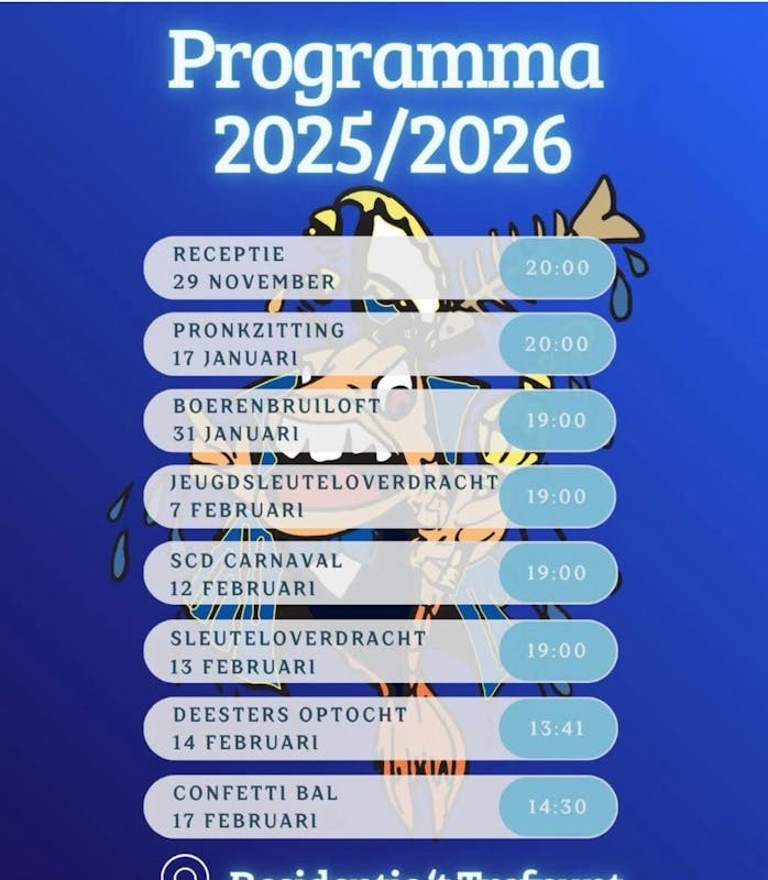 Hierbij de agenda voor het komende Carnavals seizoen!