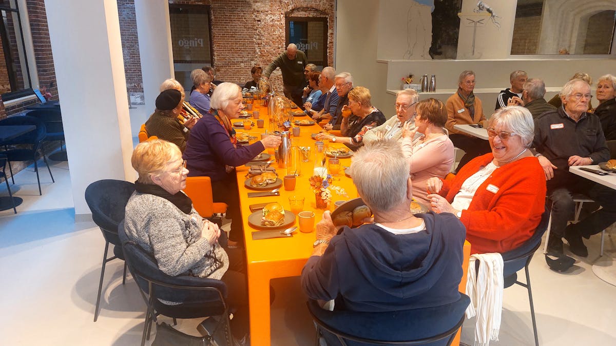 Om de lege plekken op te vullen hebben we als bestuur de Senioren verenigingen uit de andere dorpen van onze gemeenten aangeschreven waarna in korte tijd de bus volgeboekt was. Op 28-10-2025 om 8.15 kwam de bus voor gereden op het Trefpuntplein. Nadat alle 43 personen waren ingestapt vertrok de bus om 8.50 uur richting Drents Museum in Assen.