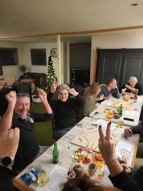 Je speelt het spel in teams: Dames tegen de heren. Leuk om te vermelden is dat de dames de trotse winnaars zijn van deze allereerste editie van het Munnikhofse Tok-toernooi met een verbluffende score van 5-1!