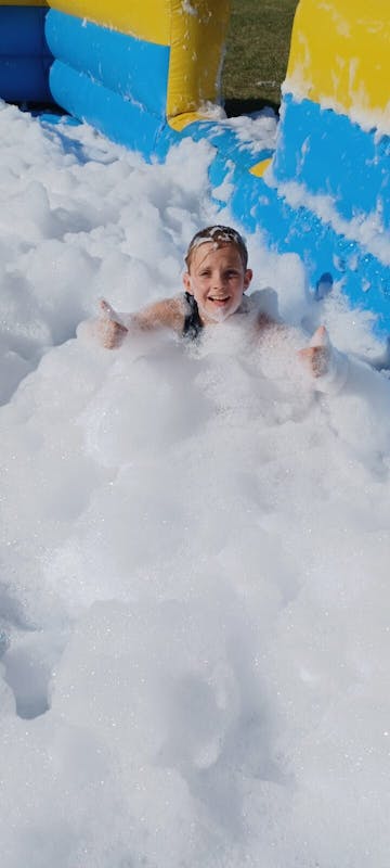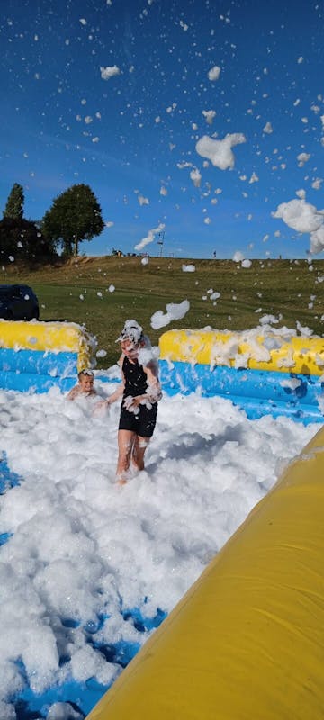 Het weer was geweldig, de kinderen hebben genoten in het schuimbad en er zijn vele ritjes op de buikschuifbaan gemaakt. En ook een aantal ouders hebben heerlijk gespeeld.